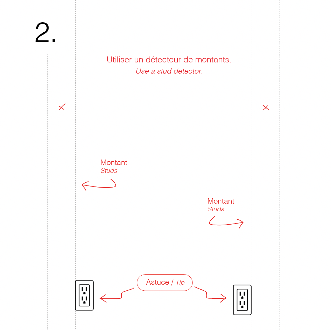 2. Utiliser un détecteur pour repérer les montants dans le mur où vous souhaitez installer le support Bonnes intentions.