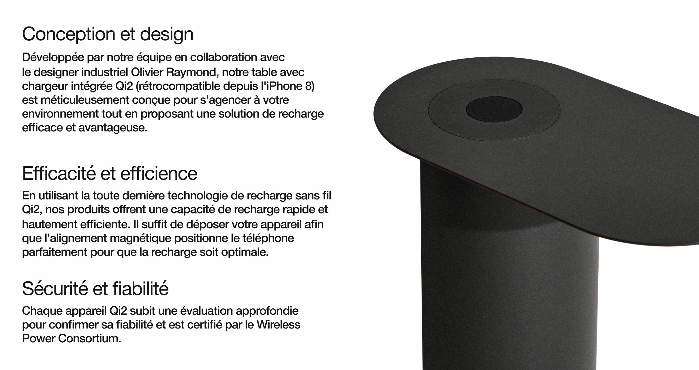 Compatible avec tous les appareils certifiés Qi2, y compris iPhone 12, 13, 14 et 15. Doté d'une puissance de recharge est de 15 watts.